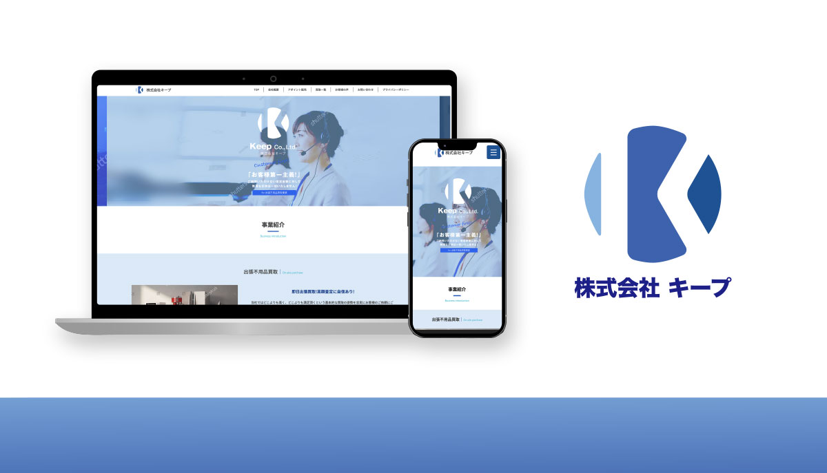 出張不良品買取業から住宅リフォームまで幅広く事業を展開されている、株式会社キープ様のロゴ、ウェブサイトを デザインさせていただきました。
